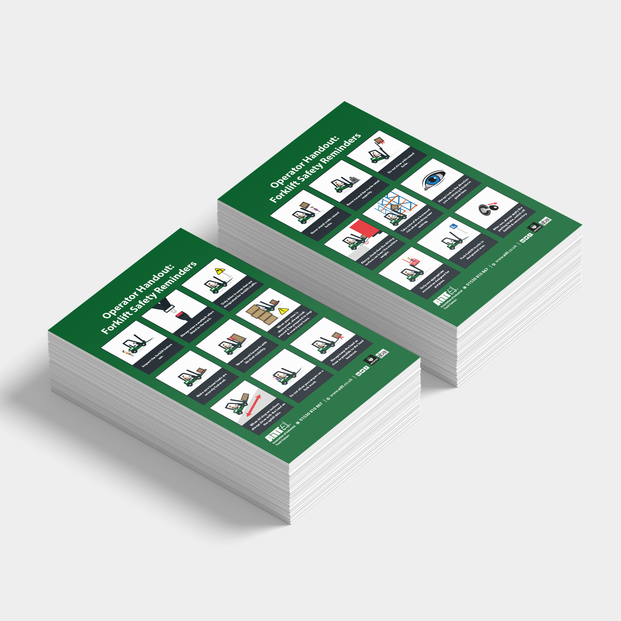 50 x A5 size high quality print, on 250 gsm satin card, simple but effective, forklift safety reminders.