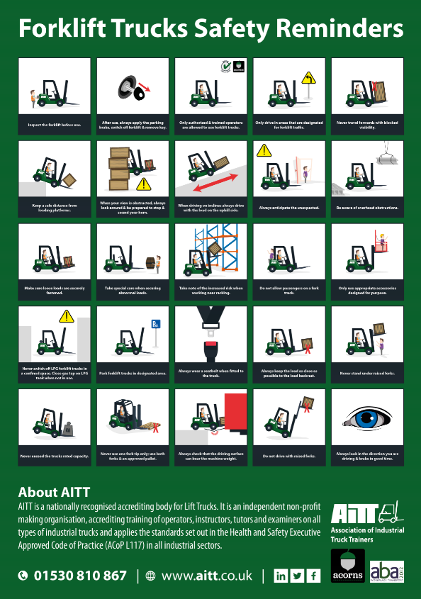 A collection of safety tips and reminders, ideal for training centres and areas where trucks are in use.